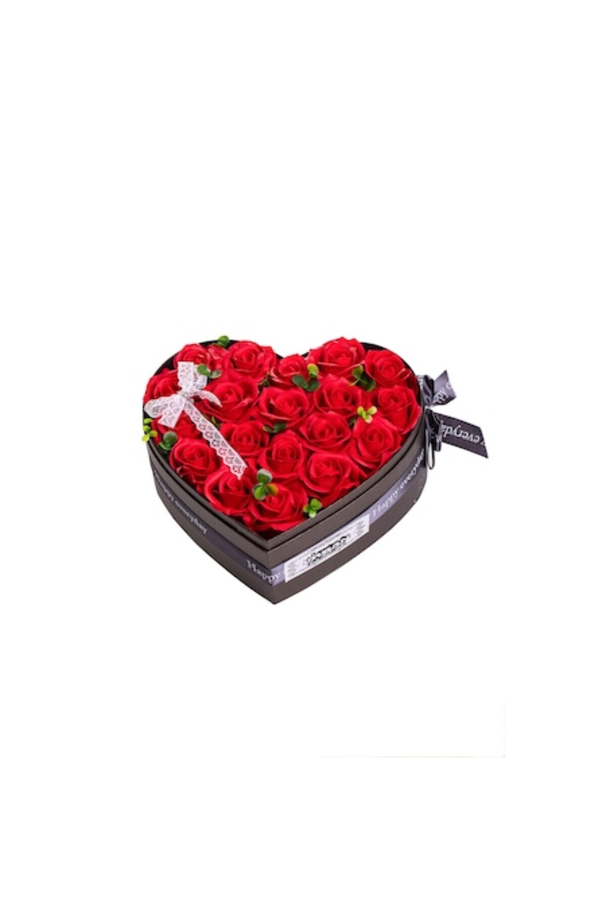 Aranjament cu inimioare, 21 de trandafiri roșii din săpun, cutie decorativă inclusă - Multicolor