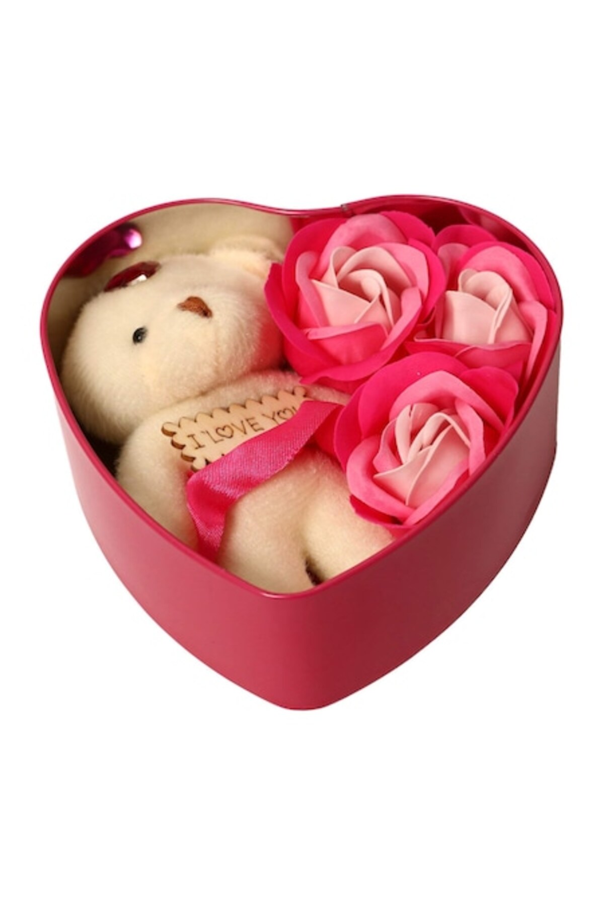 - Compoziție: 3 trandafiri de săpun parfumați și un ursuleț de pluș moale.