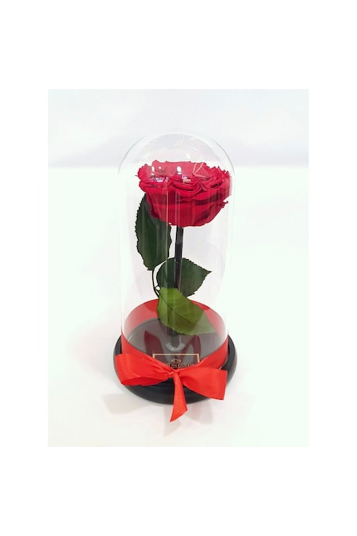 Aceasta este o frumoasă cupolă din sticlă cu un trandafir roșu conservat, perfectă pentru orice ocazie. Înălțimea cupolei este de 17 cm.