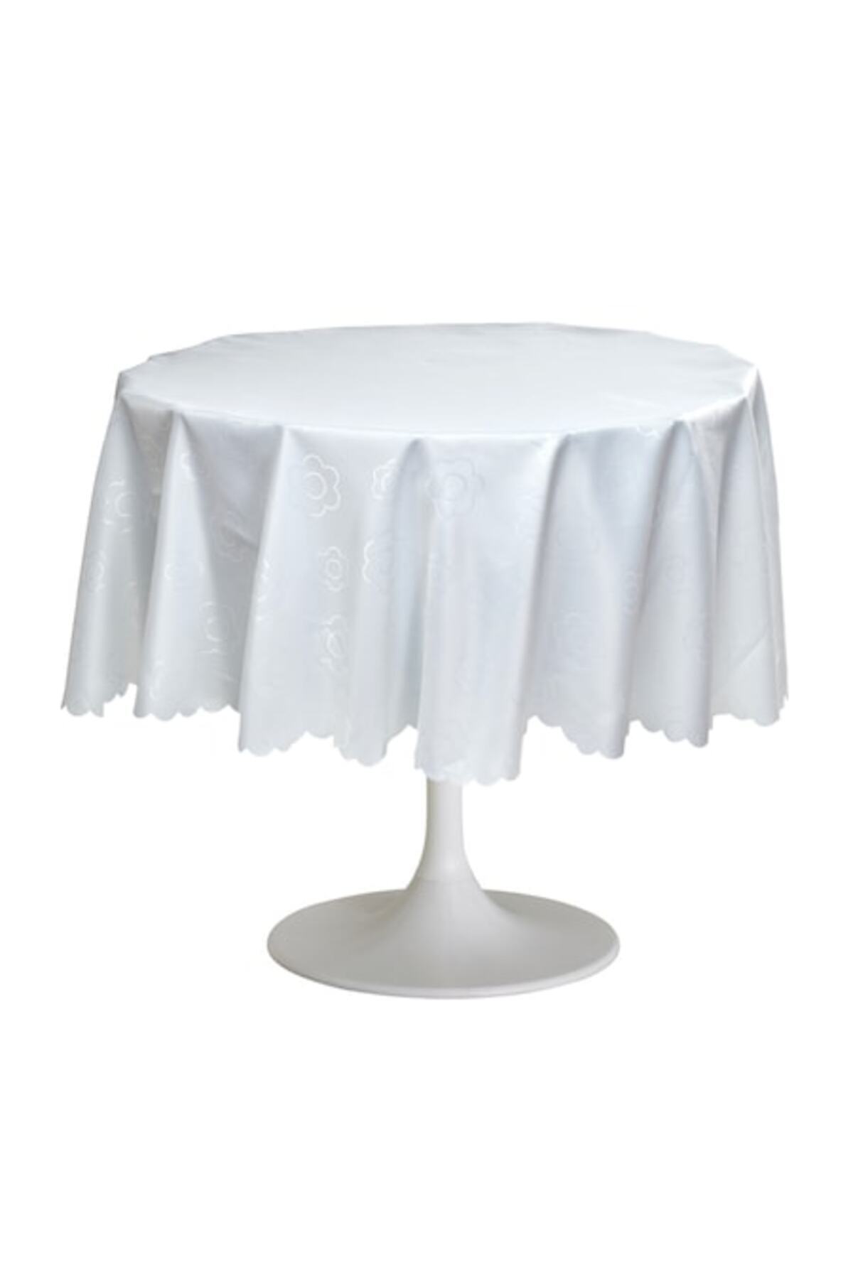 Fata de masa Jacquard, anti-pete, 100% poliester, diametru 180 cm, alba, model 02