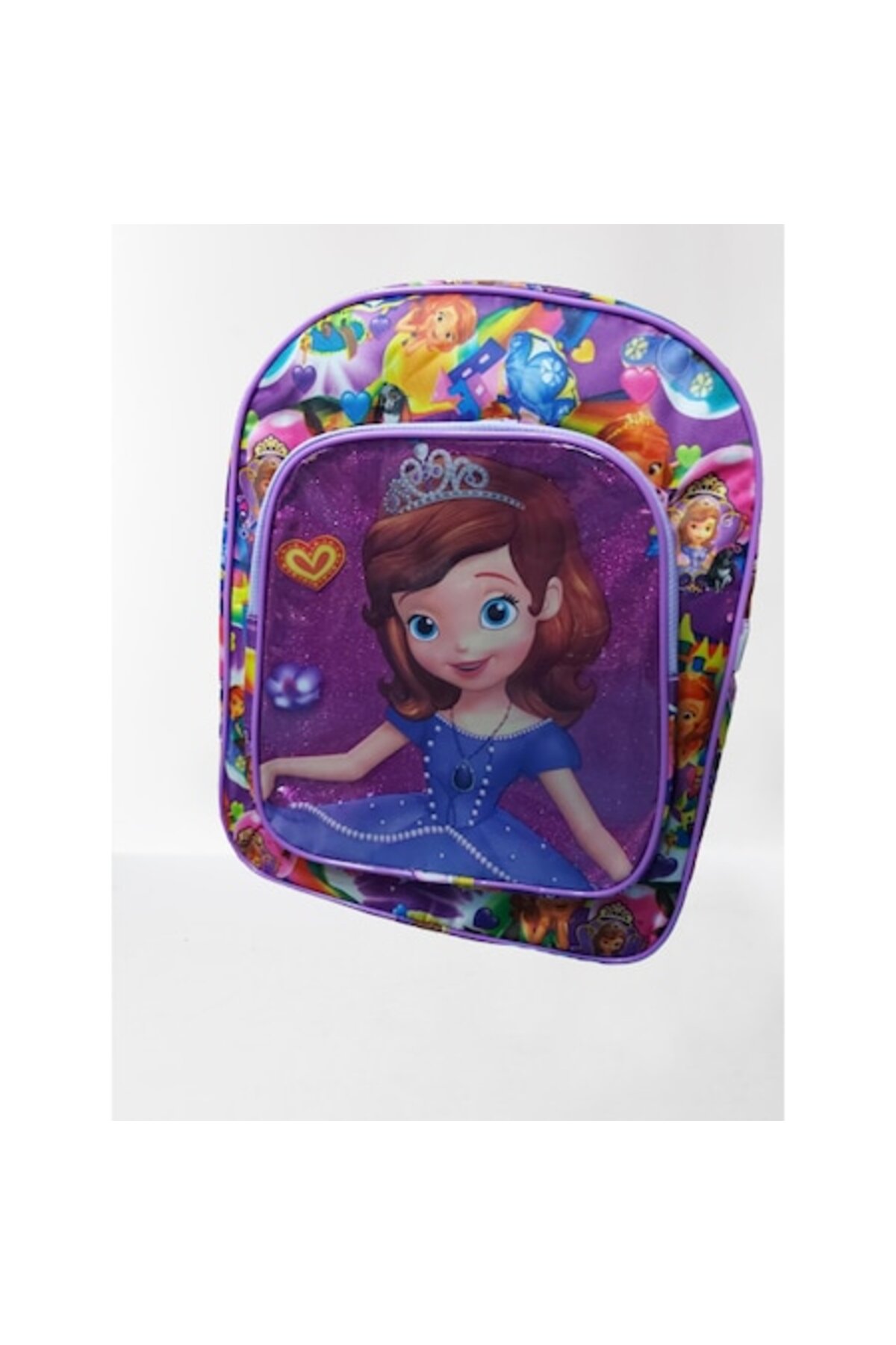 Ghiozdan cu design Printesa Sofia, roz, dimensiuni de 30 x 20 x 10 cm, realizat din poliester cu inchidere prin fermoar.; Vândut și livrat de Bazavan Marc Catalin.; Stoc epuizat.