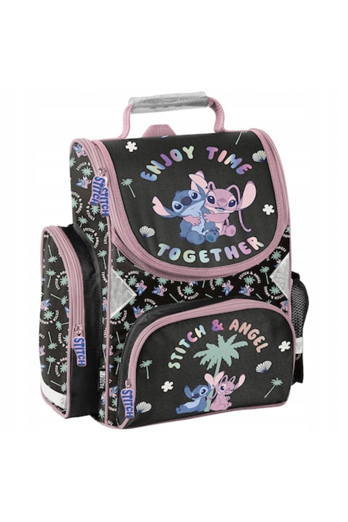 Ghiozdan școlar Lilo & Stitch cu un compartiment principal spațios cu separator interior, un buzunar frontal cu închidere și două buzunare laterale: unul din plasă pentru băuturi și celălalt cu fermoar; Include un spate întărit, cu formă ergonomică, bretele confortabile și conturate pentru menținerea unei posturi corecte, o bază întărită și elemente reflectorizante; Fabricat din material rezistent la apă.