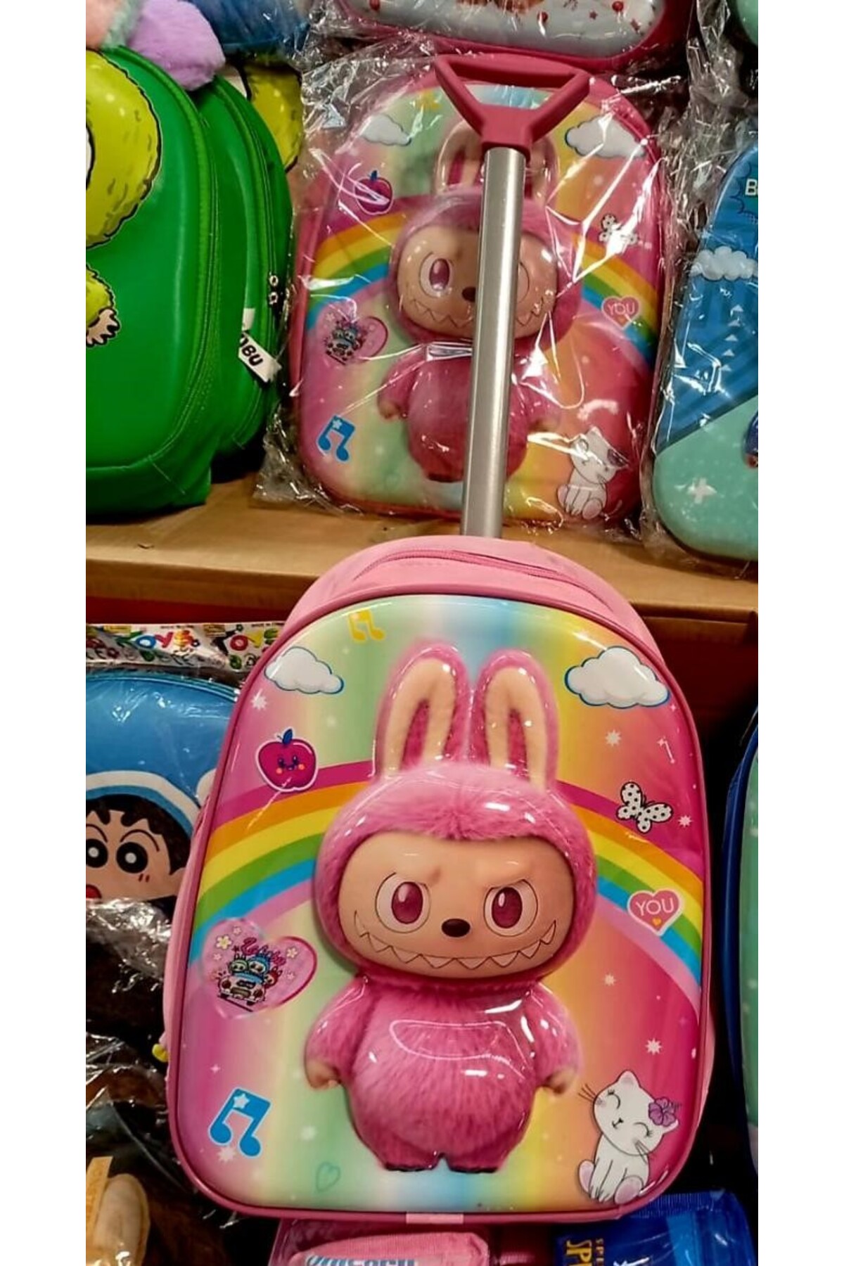 Ghiozdan Troler Scolar LABUBU - Confort și Eleganță în Roz