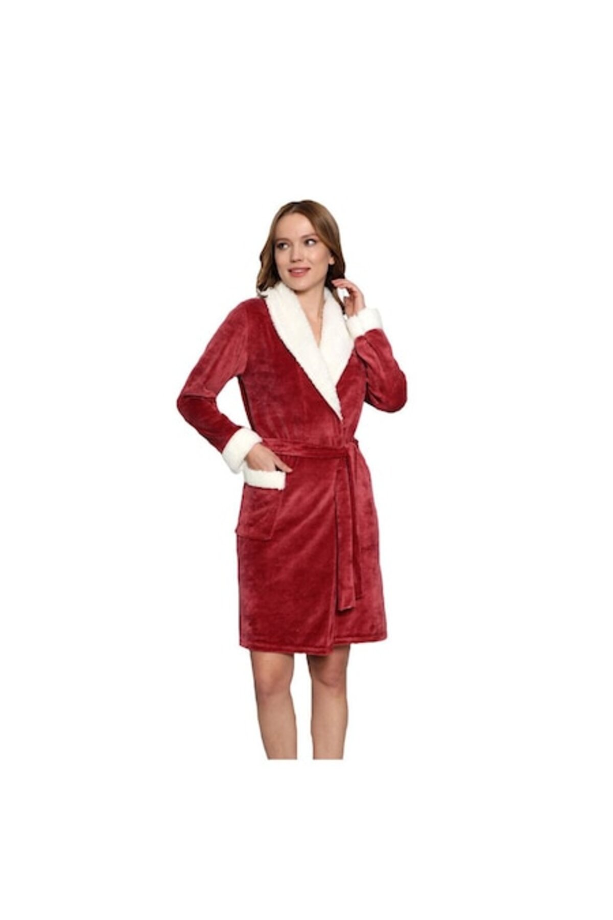 Halat cu blana, catifea, bordeaux L - Rosu, 200D