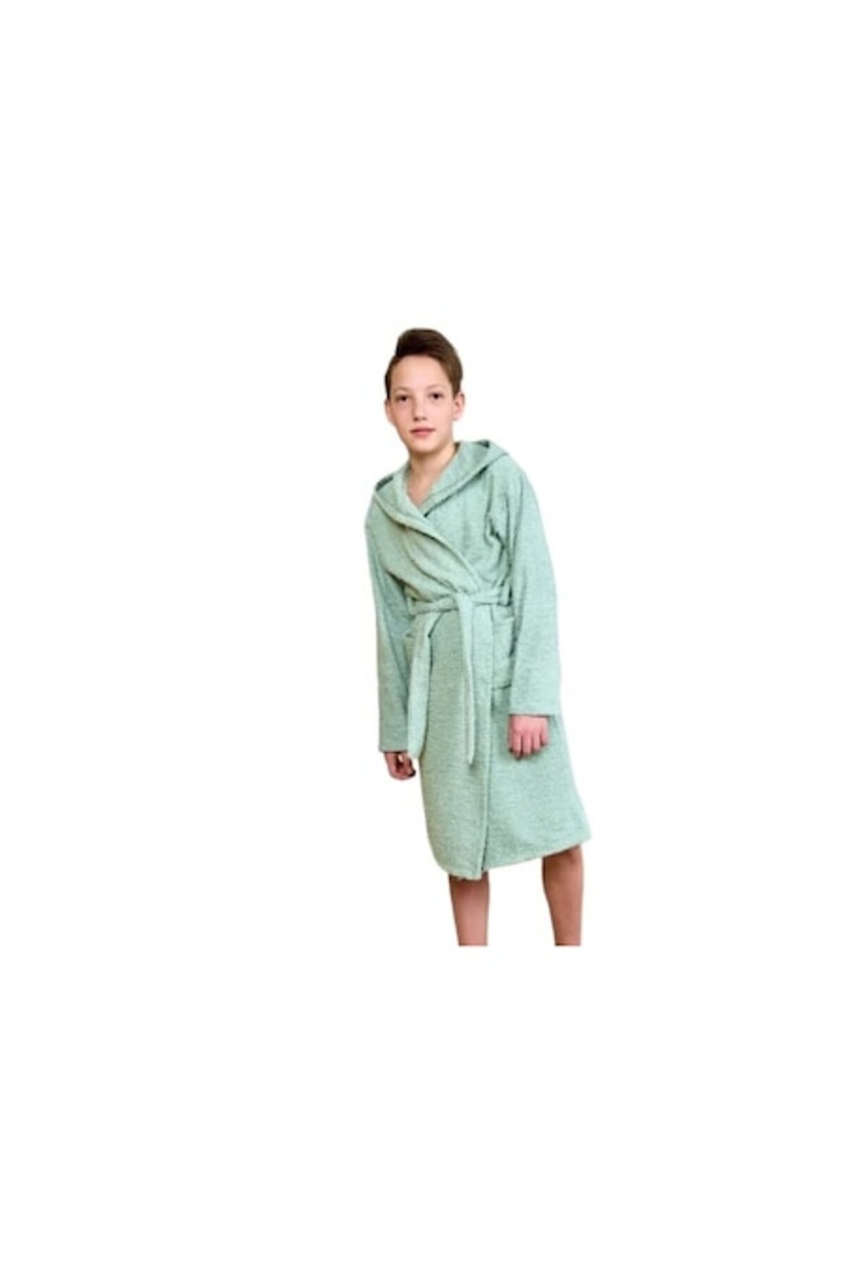 Halat de baie pentru copii de 8 ani cu gluga, curea reglabila si buzunar - Verde