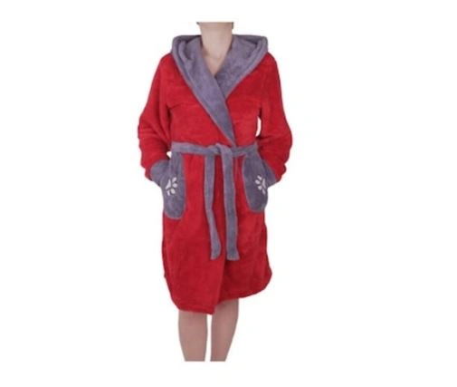 Halat de baie pentru femei cu design de buzunar, curea in talie, urechi, rosu/gri deschis, 2XL Rosu L