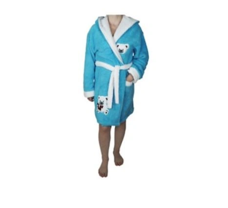 Acest halat într-o nuanță relaxantă de albastru deschis nu este doar confortabil, ci și practic. Vine echipat cu o glugă călduroasă și un buzunar încăpător, decorat cu un detaliu simpatic sub formă de ursuleț de pluș. Este special conceput pentru a absorbi eficient apa și pentru a menține temperatura optimă a corpului imediat ce ieși din cadă sau duș.