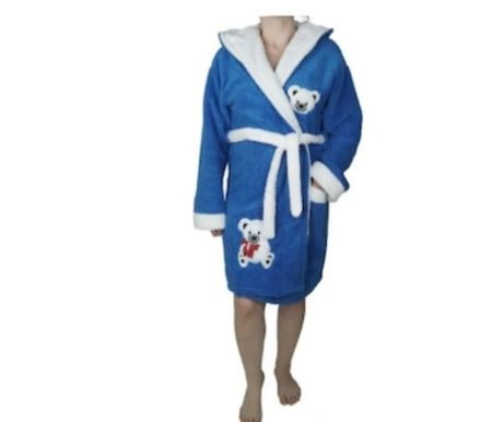 Halat de baie pentru femei cu ursulet de plus, buzunar, cocolino, gluga, albastru L-XL Albastru 2XL
