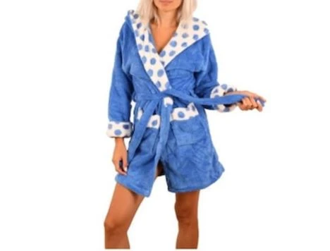 Halat de baie pufos pentru femei cu buline - Albastru M-L Albastru XL