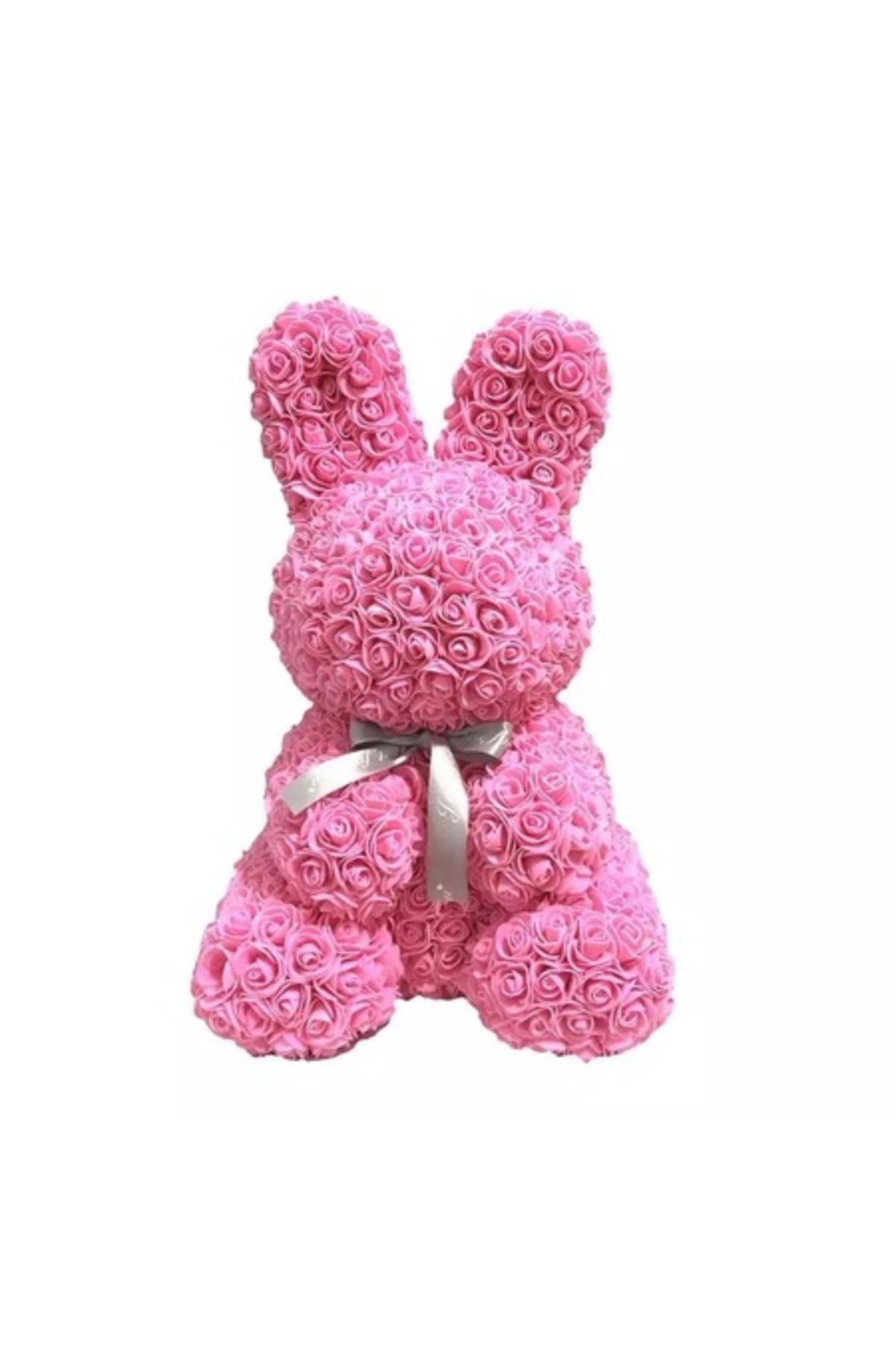 Iepuraș roz decorat manual cu trandafiri din spumă, 40 cm înălțime, cutie decorativă inclusă, iluminare LED, realizat manual de Urban Trends.; Trandafirul este întotdeauna mesagerul perfect în poveștile inimii, simbolizând frumusețea, viața și iubirea.