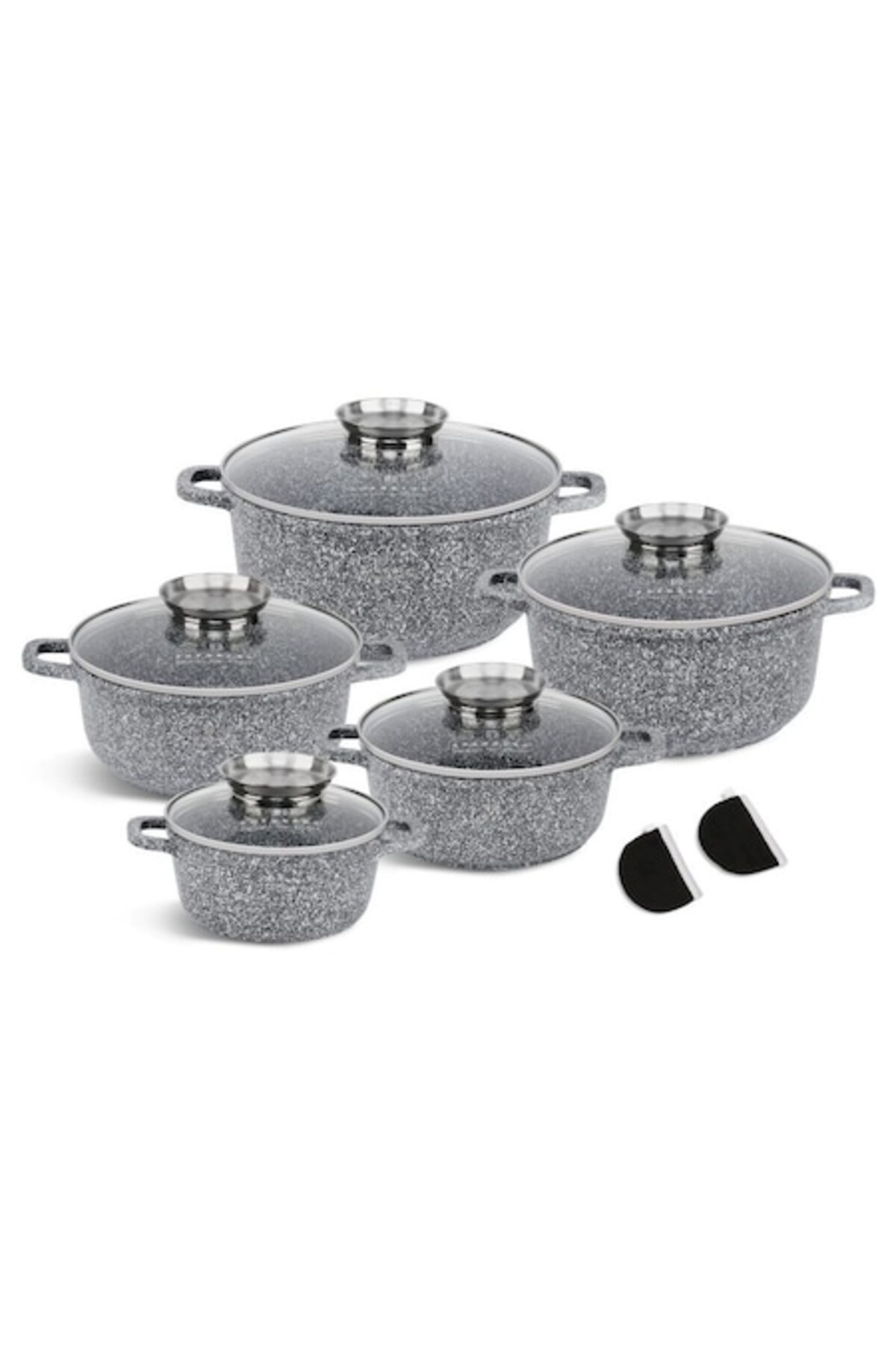 Set de 10 oale antiaderente cu capace de sticlă, aluminiu turnat sub presiune EB-8147 - Culoare argintie