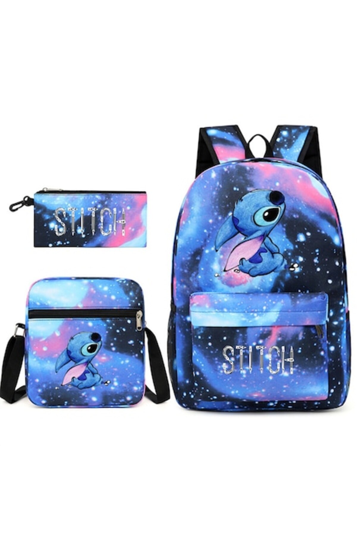 Set de ghiozdan școlar de trei piese, albastru înstelat, 45*13*32cm, Lilo & Stitch