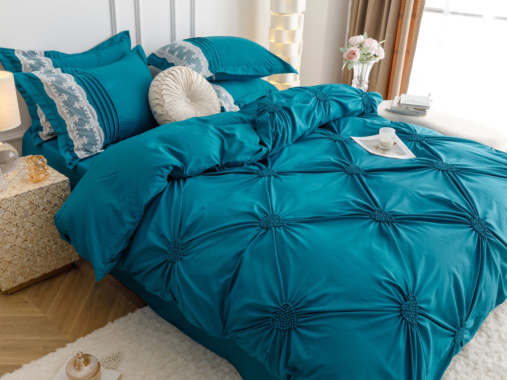 Set Lenjerie de pat decor imperial, Jojo bumbac 2 persoane, 6 piese turcoaz Concept E Efrall - Turcoaz inchis, 230 x 250