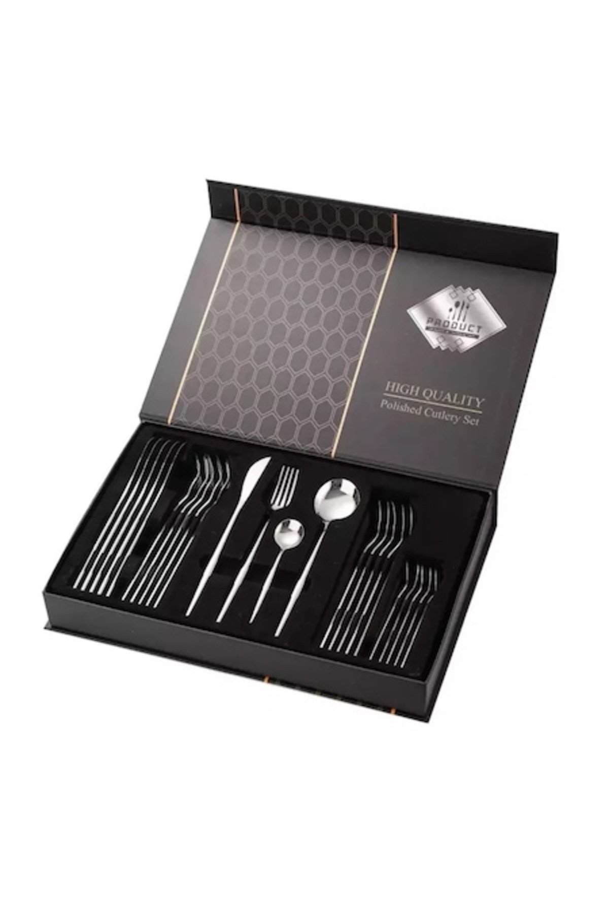 Fiecare piesă este fabricată din oțel inoxidabil de înaltă calitate, garantând rezistență la coroziune și o strălucire de durată. Culoarea argintie și finisajul impecabil transformă acest set într-un accesoriu de lux pentru bucătăria ta, fiind totodată ușor de curățat și întreținut.