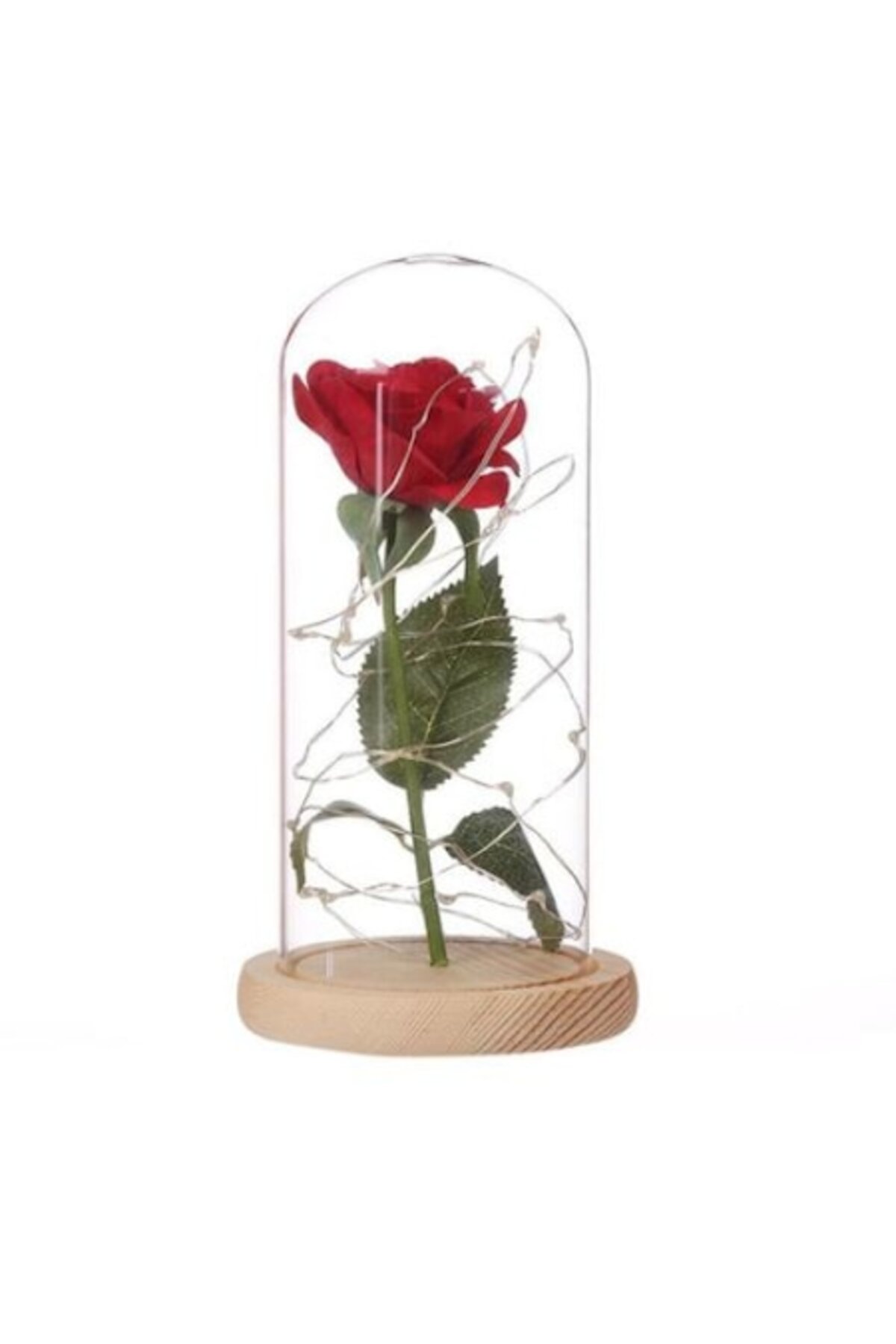 Trandafir artificial Burgundy, cupolă de sticlă cu bandă LED - Burgundia