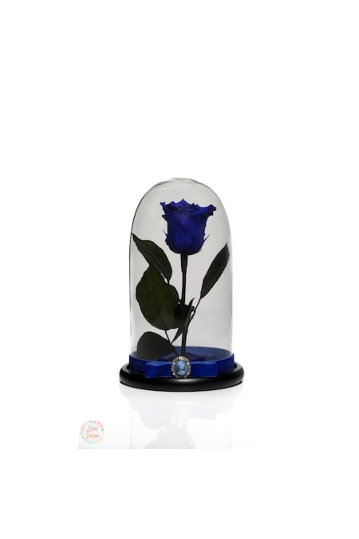 Trandafir criogenat în cupolă de sticlă 25 cm cu broșă cameo, albastru