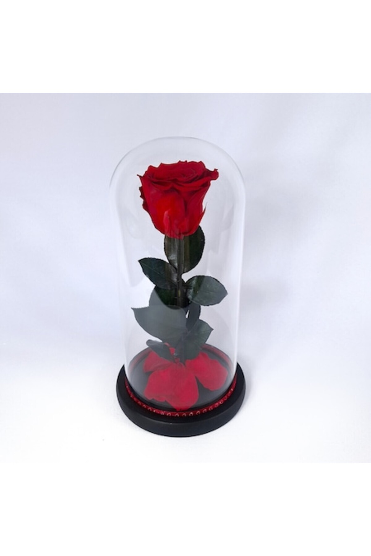 Trandafirul criogenat este o operă de artă vie, conservată într-un moment etern de frumusețe.; Acest trandafir unic, atent selectat și supus unei transformări delicate, își păstrează aspectul proaspăt și încântător ani de zile, fără a avea nevoie de apă sau lumină specială.; Este simbolul perfect al perfecțiunii eterne, un dar al iubirii care nu se ofilește niciodată și o mărturie a frumuseții care transcende timpul.; Trandafirul criogenat nu este doar o floare, ci o experiență vizuală și emoțională, o poveste de dragoste conservată pentru a încânta sufletul în fiecare zi.; Așezat sub o elegantă cupolă de sticlă, acest trandafir reprezintă o expresie rafinată a eleganței și luxului, fiind cadoul ideal pentru orice ocazie specială.; Nu necesită îngrijire sau tratament special.; Nu expuneți la lumina directă a soarelui și nu udați.