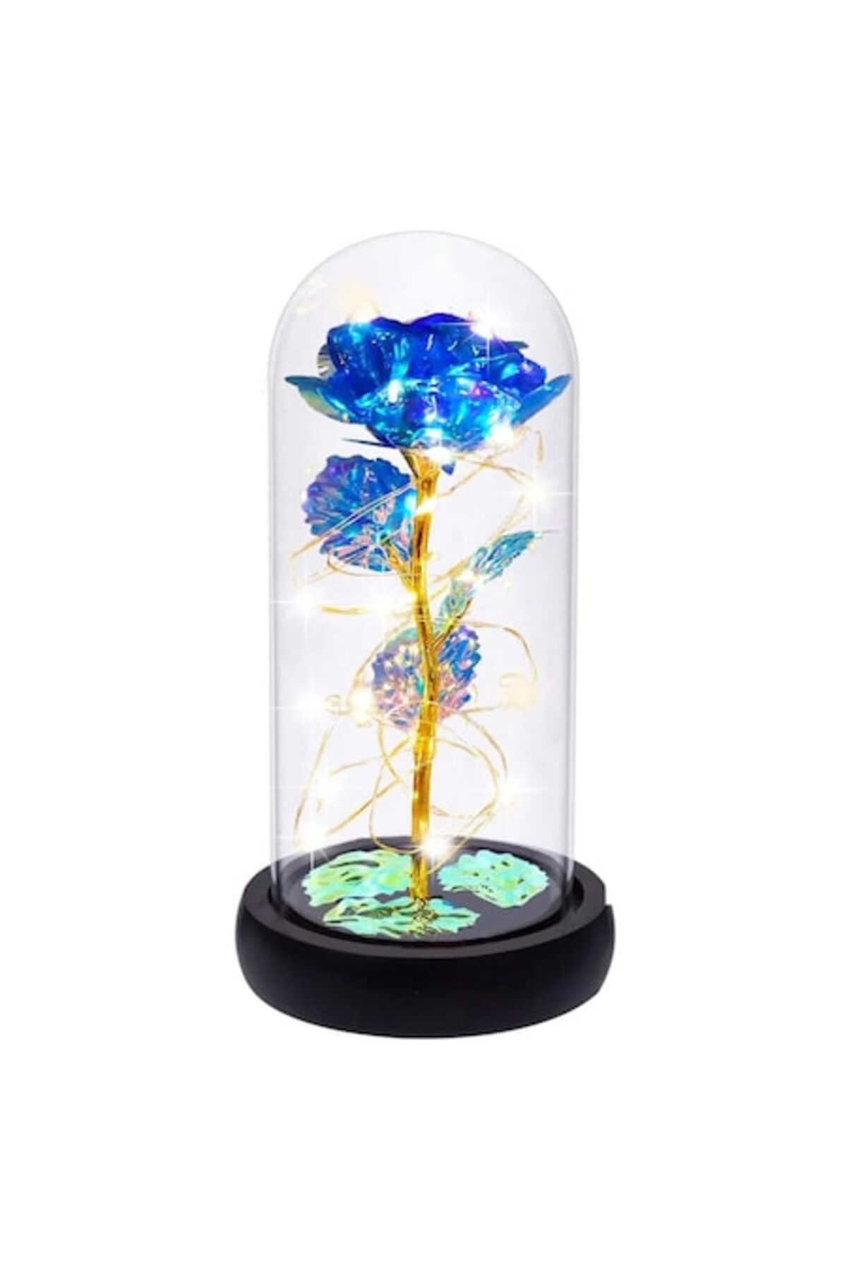 Trandafir criogenat în cupolă , sticlă, LED, 20 cm, albastru