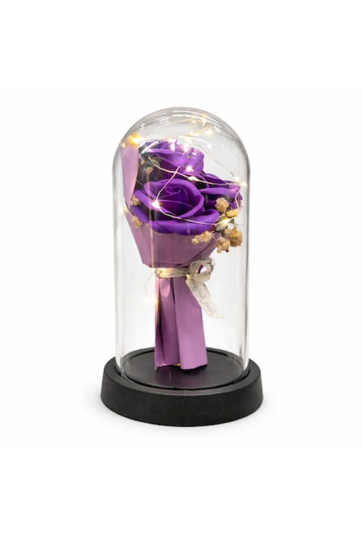 Trandafir de săpun mov în cupolă cu lumină LED ambientală, 20 cm