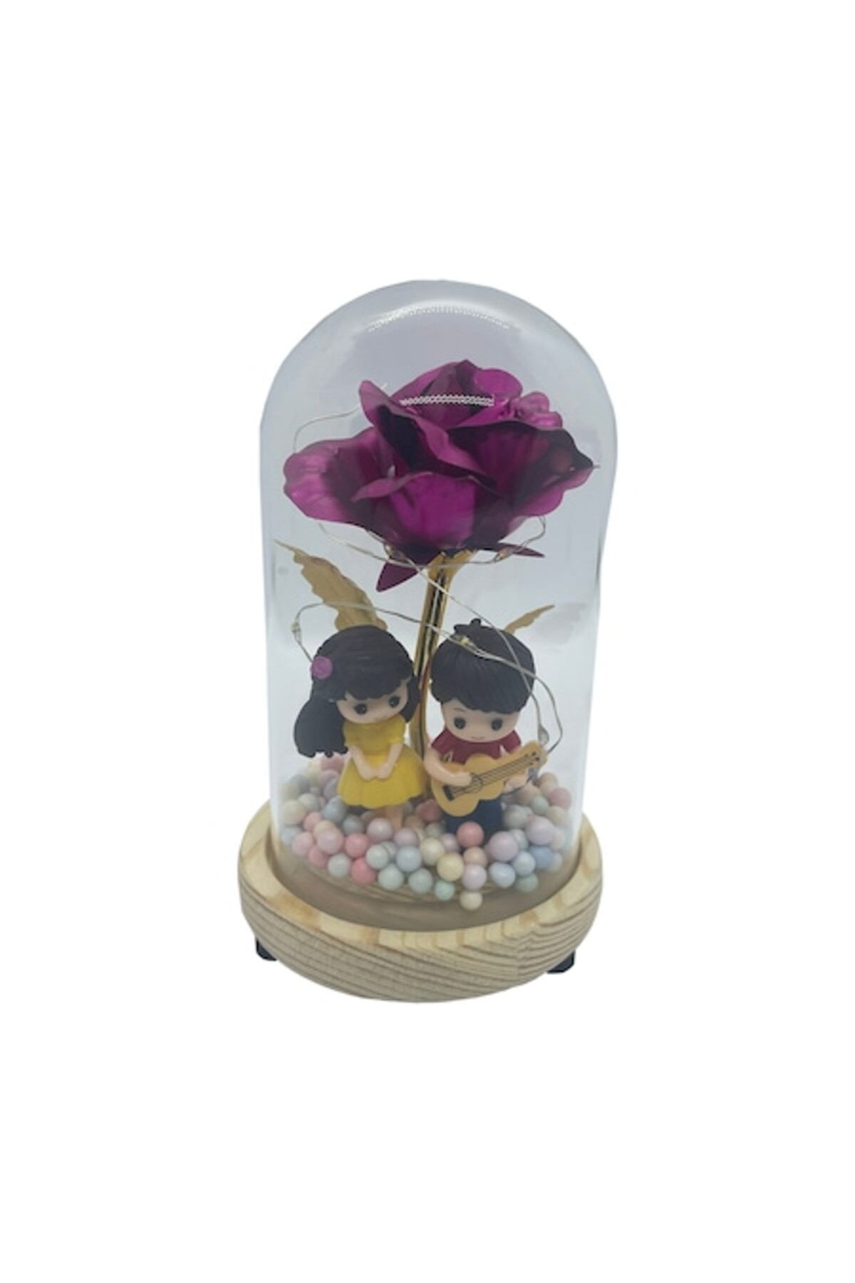 Trandafir în cupolă de sticlă cu lumină LED - Purple Gold