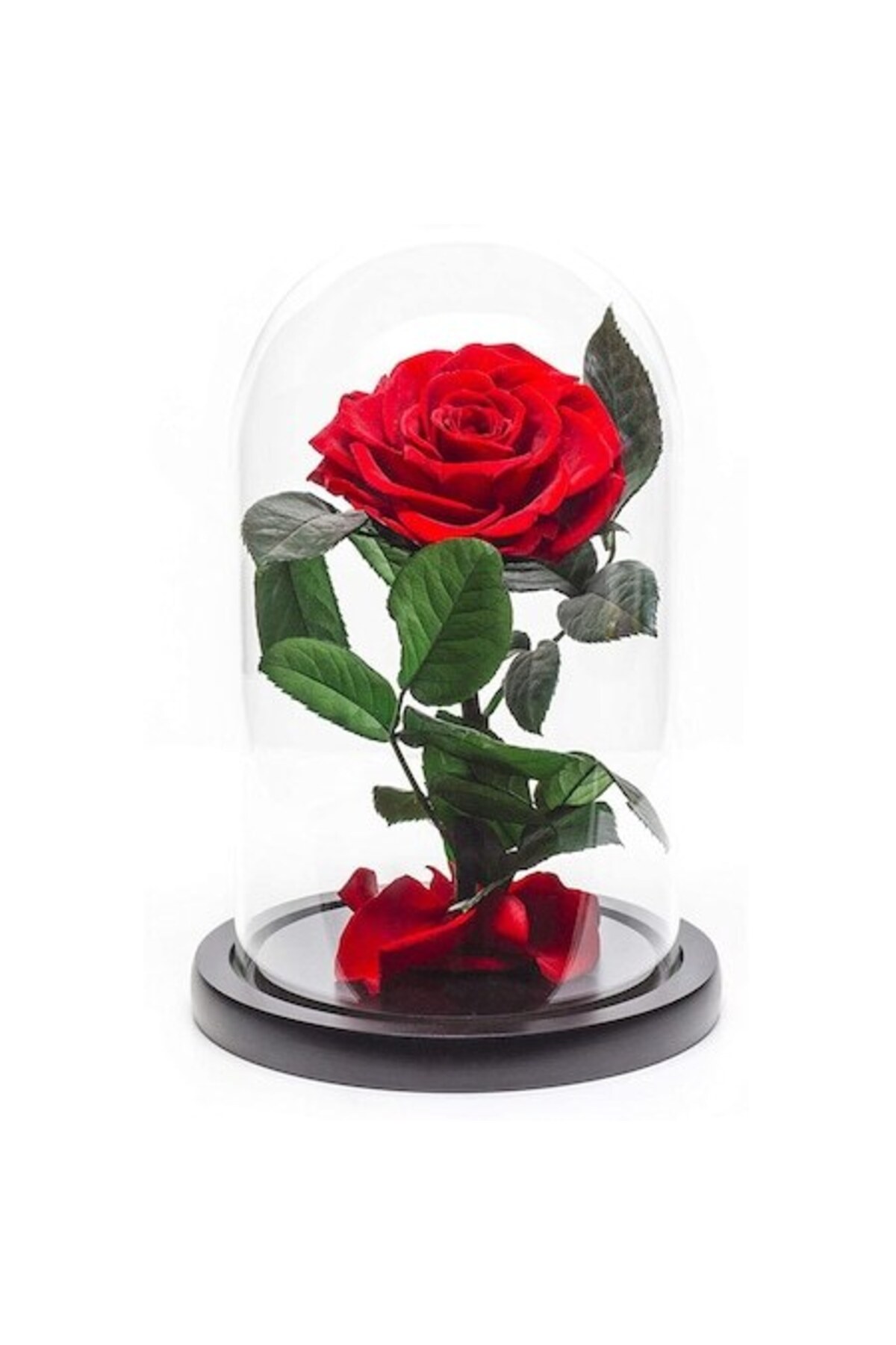 Trandafiri conservați care rezistă până la 25 de ani.; Cadoul preferat pentru femei, perfect pentru orice ocazie.; Se spune că dragostea este nemuritoare, iar trandafirii simbolizează acest sentiment pentru scurt timp.; KDECO aduce trandafirii la același nivel cu dragostea.; Comandați un trandafir roșu conservat mare (Ø=9-9.5cm) într-o cupolă de sticlă (dimensiuni 17x28cm), pe o bază din lemn negru.; Trandafirul conservat este de la marca RoseAmor - marca numărul 1 în lume din Ecuador (cea mai bună calitate a conservării).; Nu necesită îngrijire sau tratament special.; Nu expuneți la lumina directă a soarelui și nu udați și nu puneți în apă.; Alegeți cel mai frumos cadou pentru femei și fete (prieten, soție, mamă, prietenă, amantă, bunică, nașă, soacră, profesoară, educatoare, instructoare).; Trandafirul conservat de lux nemuritor este cadoul perfect care aduce zâmbete de bucurie pe fețele celor dragi și reprezintă o modalitate frumoasă și originală de a spune MULȚUMESC!