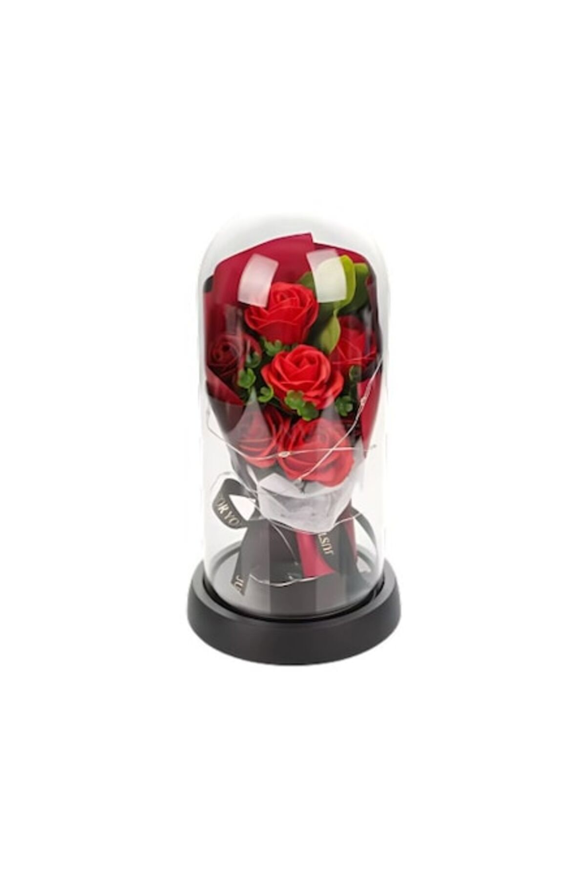 Trandafiri în cupolă de sticlă cu lumini LED, roșii, 11 x 21 cm - Rosu