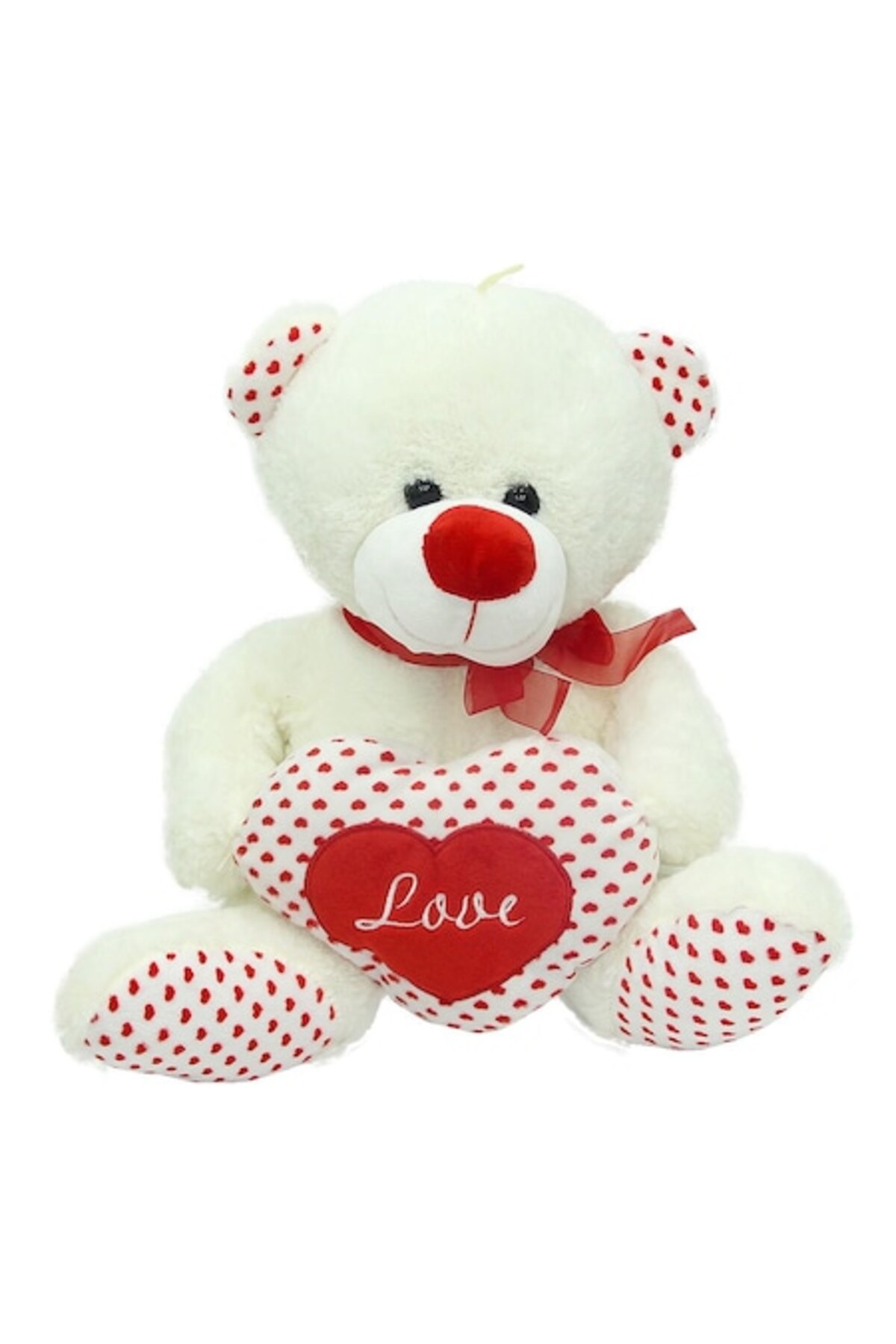 Urs de plus,40cm, inima, alb,