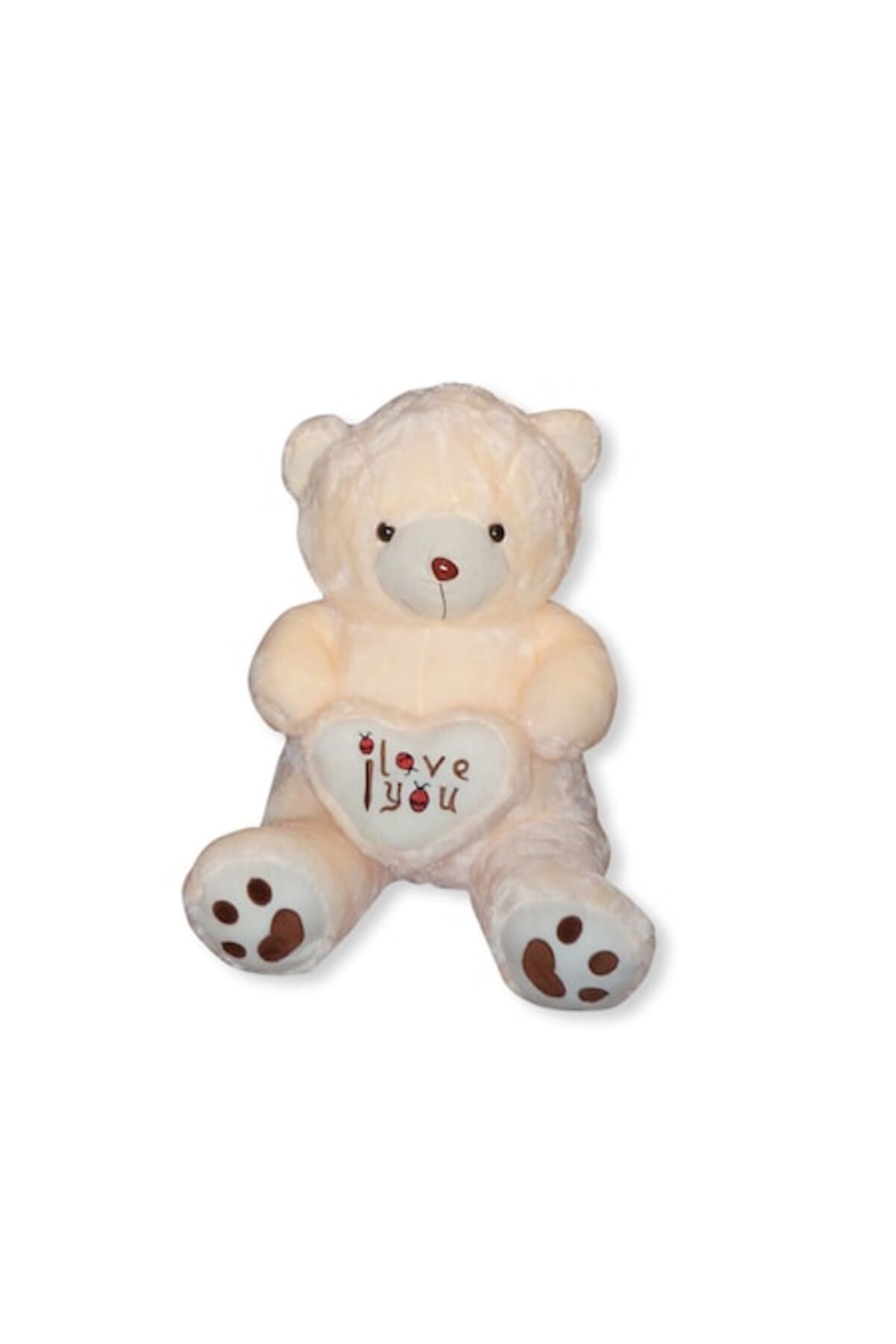 Ursuleț 90 cm, de pluș cu inimă „Te iubesc”, crem - Smântână
