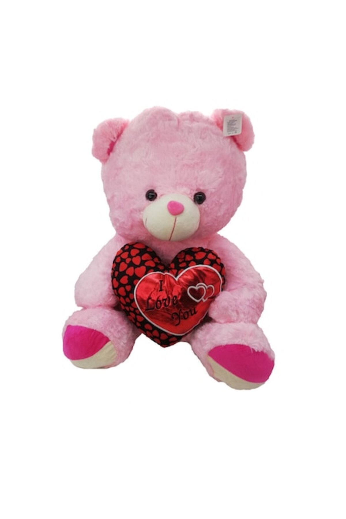 Ursuleț de pluș 40 cm roz cu inimă roșie