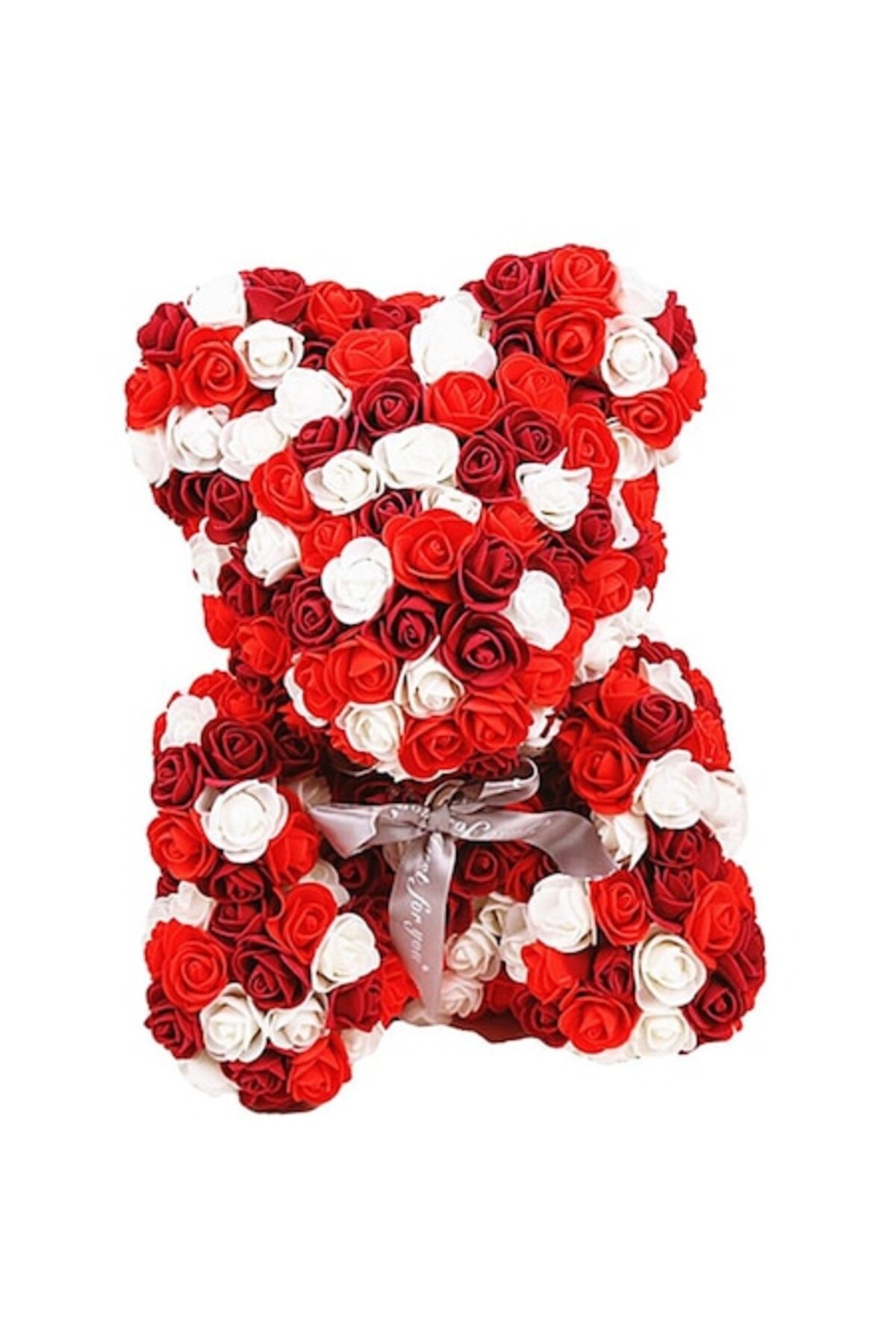 Ursulețul de pluș realizat din trandafiri de săpun roșii și albi este alegerea perfectă pentru un cadou elegant, care cu siguranță nu va trece neobservat.; Este realizat manual cu trandafiri moi, creând un aspect romantic.; Acest ursuleț de pluș este o modalitate subtilă de a-i aminti persoanei dragi de emoțiile și sentimentele tale puternice.; Poate fi așezat acasă sau la birou datorită dimensiunilor sale ideale: înălțime de 25 de centimetri și lățime de 16 centimetri.; Dimensiunea trandafirilor este de aproximativ 3,5 cm.; Culoare: Roșu și alb.; Accesoriu romantic realizat manual.; Ursulețul de pluș conține aproximativ 260 de trandafiri de săpun.