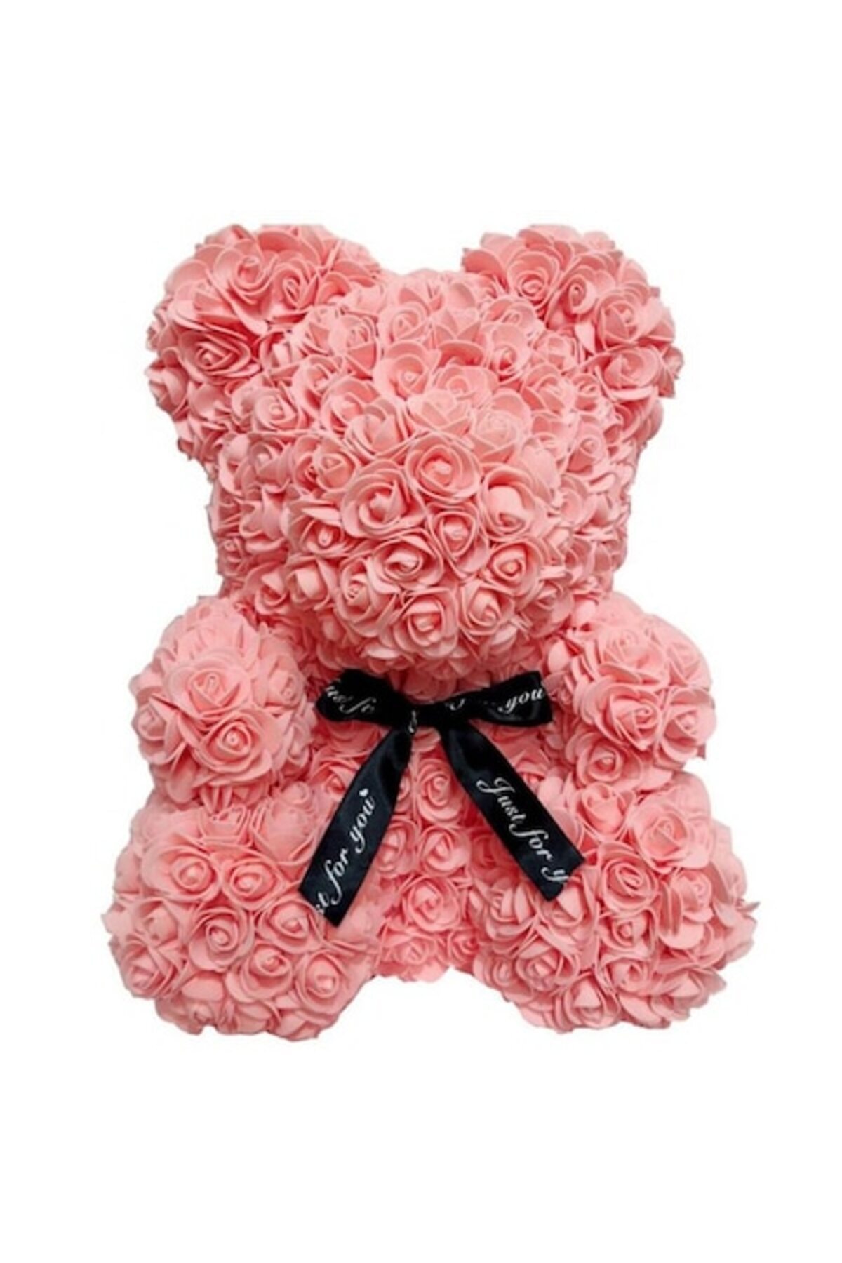 Ursuleț roz decorat cu trandafiri din spumă - Multicolor